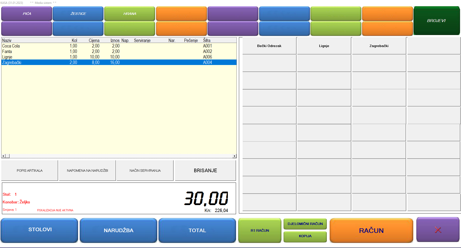 Program restaurant za ugostitelje odlikuje se jednostavnošću s mogućnošću korištenja više stolova u istom trenutku. Sa brzim i preglednim izbornicima i meniom, program Restaurant je stvoren za Vas! Brzi pregled stolova, artikala, dnevnog prometa i totala pridonose jednostavnosti našeg programa.